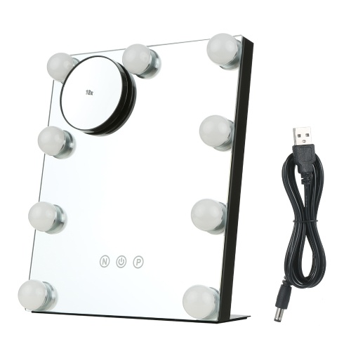 - /Tomshine Tabletop Mirror with Light 9 Bulbs Touching Control Makeup Mirror Detachable 10x Magnifier USB Powered Dimmable 3 Lighting Colors for Dressing Room Studios